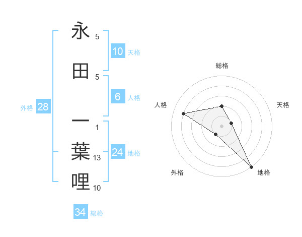 永田 一葉哩さんを姓名の画数から五運を鑑定