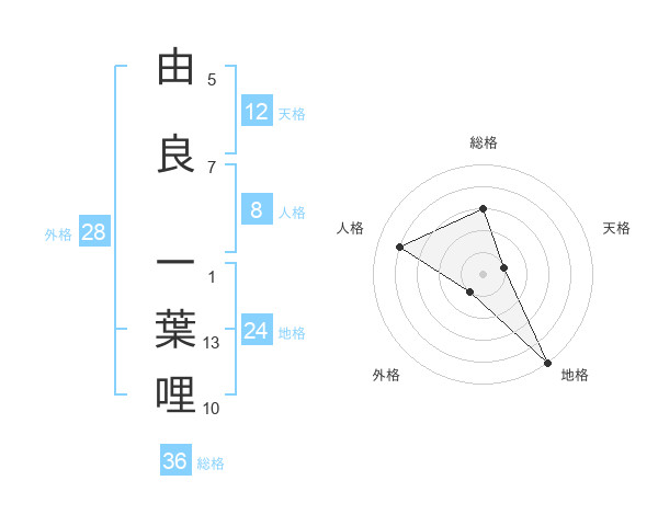 由良 一葉哩さんの天格は12画の1点!
