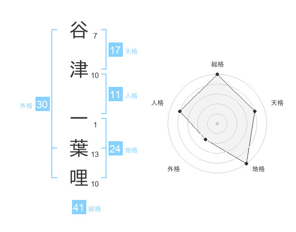 谷津 一葉哩さんを姓名の画数から五運を鑑定