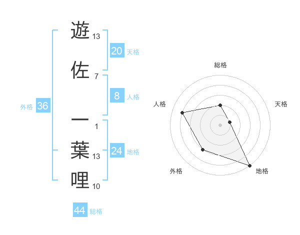 遊佐 一葉哩さんを姓名の画数から五運を鑑定