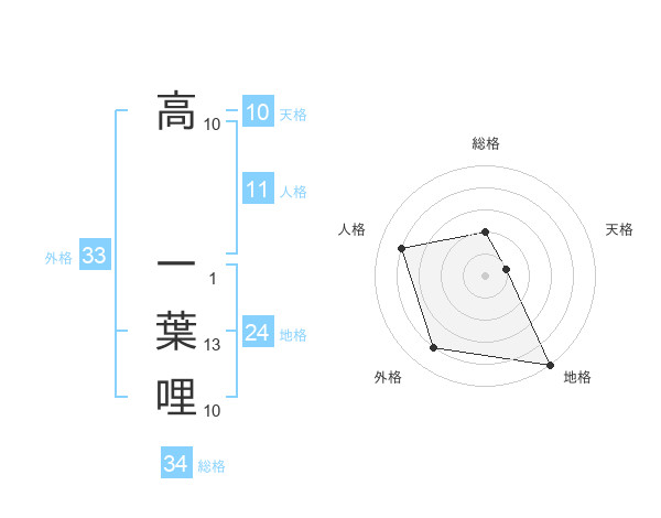 高 一葉哩さんを姓名の画数から五運を鑑定