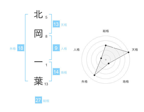 北岡 一葉さんを姓名の画数から五運を鑑定