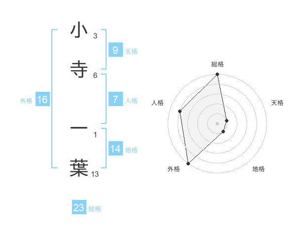 小寺 一葉さんを姓名の画数から五運を鑑定