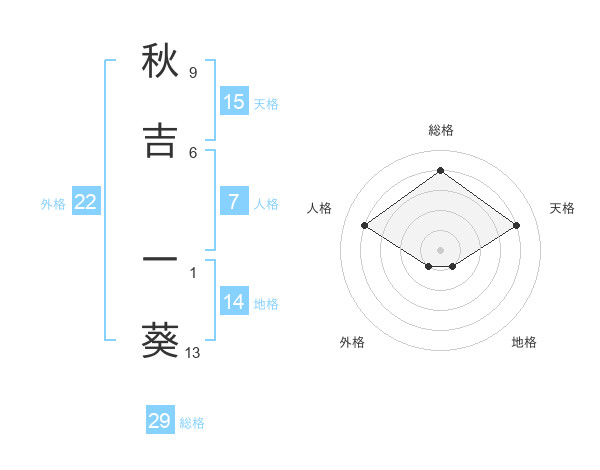 秋吉 一葵さんを姓名の画数から五運を鑑定