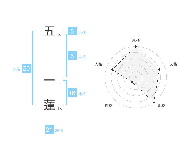 五 一蓮さんの総格は21画の5点!