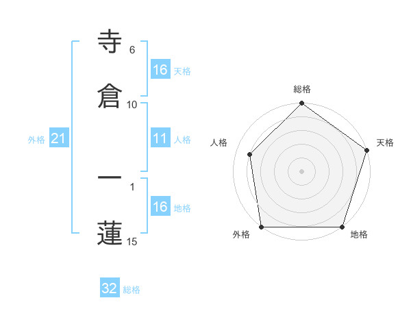 寺倉 一蓮さんを姓名の画数から五運を鑑定