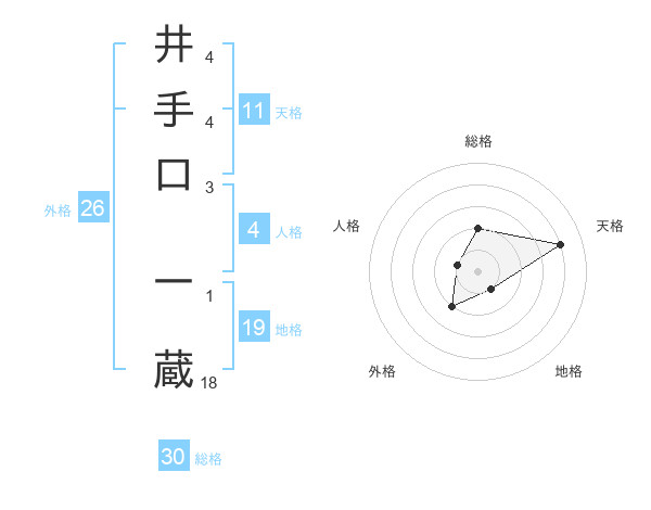 井手口 一蔵さんの総格は30画の2点!