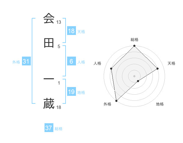 会田 一蔵さんの総格は37画の5点!
