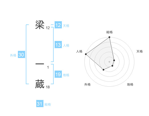 梁 一蔵さんを姓名の画数から五運を鑑定