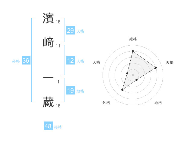 濱﨑 一蔵さんの総格は48画の4点!