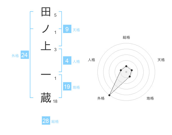 田ノ上 一蔵さんの総格は28画の1点!