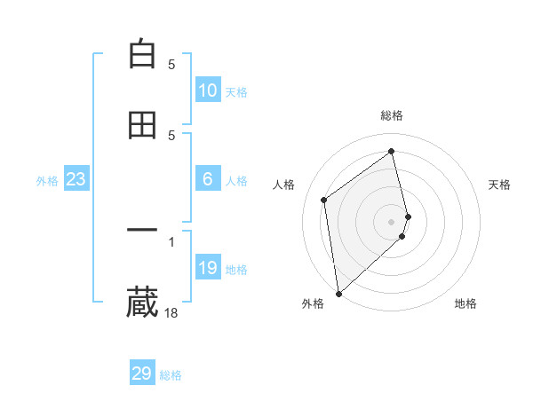 白田 一蔵さんの総格は29画の4点!