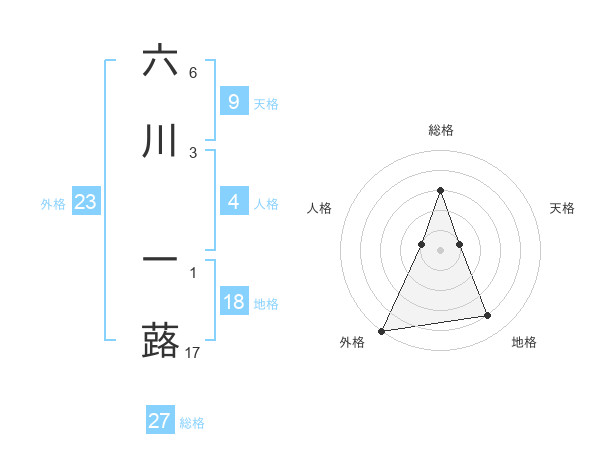 六川 一蕗さんの外格は23画の5点!