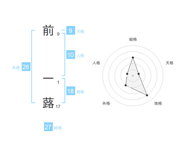 前 一蕗さんの総格は27画の3点!