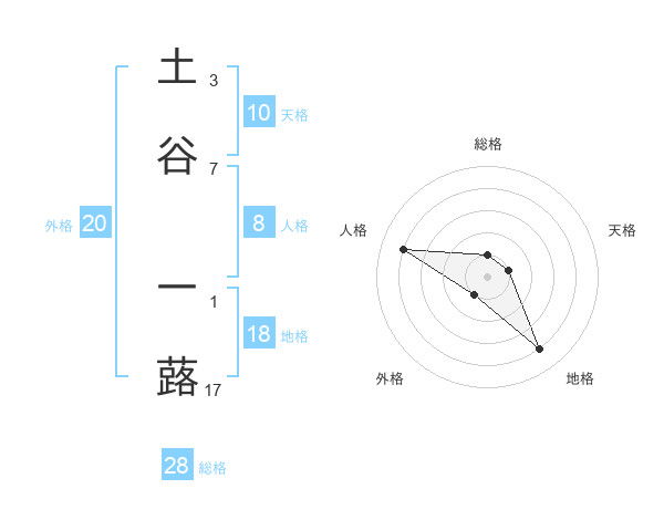 土谷 一蕗さんの総格は28画の1点!