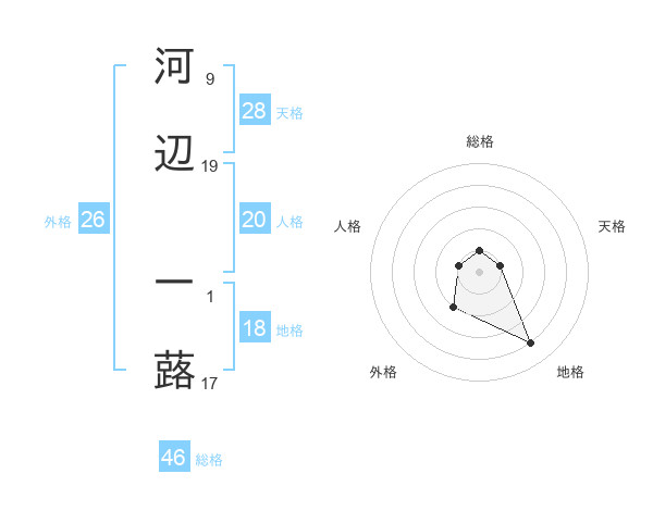 河辺 一蕗さんの総格は46画の1点!