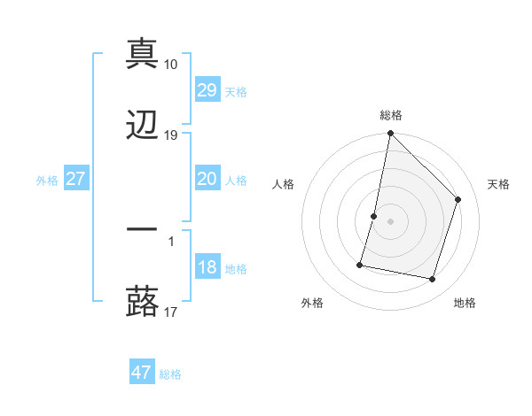 真辺 一蕗さんの総格は47画の5点!