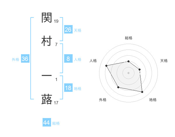 関村 一蕗さんの総格は44画の2点!