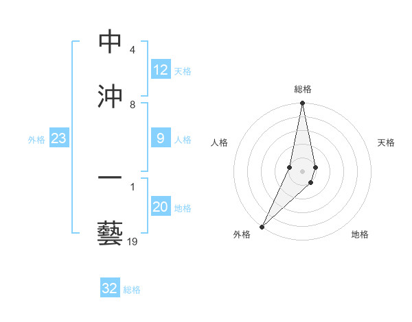 中沖 一藝さんを姓名の画数から五運を鑑定
