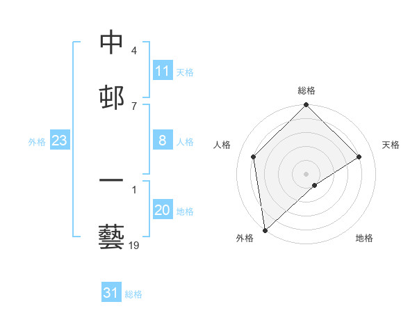 中邨 一藝さんを姓名の画数から五運を鑑定