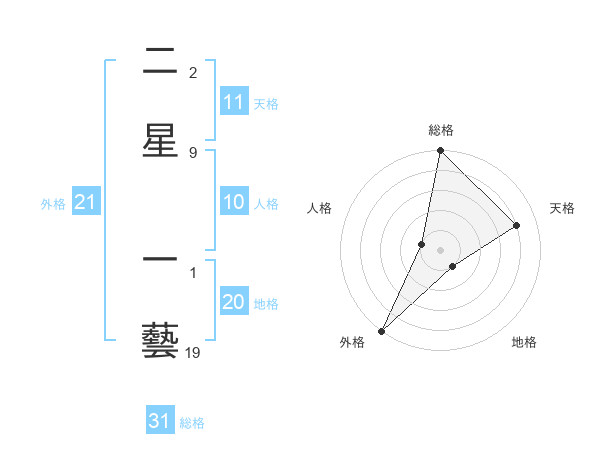 二星 一藝さんの総格は31画の5点!