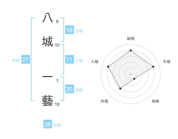 八城 一藝さんの総格は38画の4点!