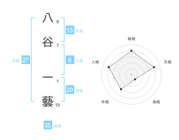 八谷 一藝さんを姓名の画数から五運を鑑定