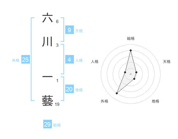 六川 一藝さんの総格は29画の4点!
