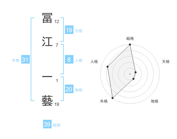 冨江 一藝さんを姓名の画数から五運を鑑定