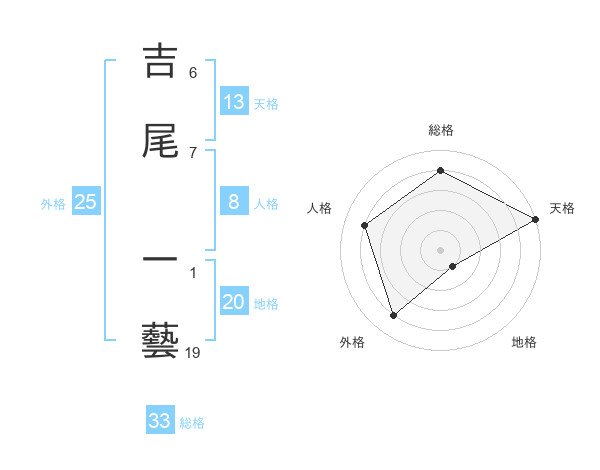 吉尾 一藝さんを姓名の画数から五運を鑑定