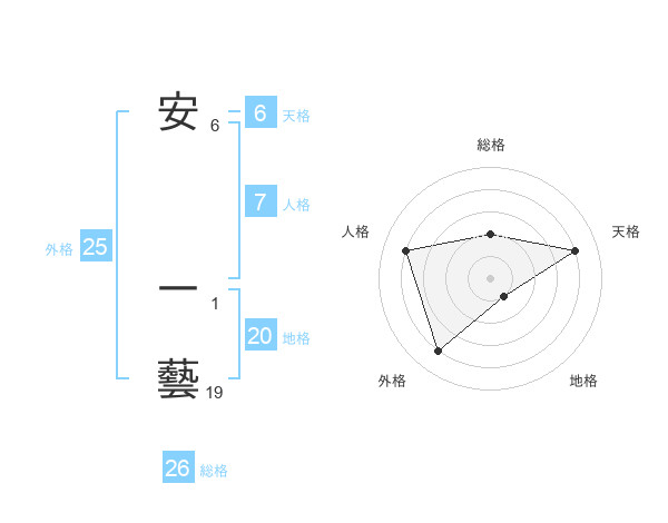 安 一藝さんの総格は26画の2点!