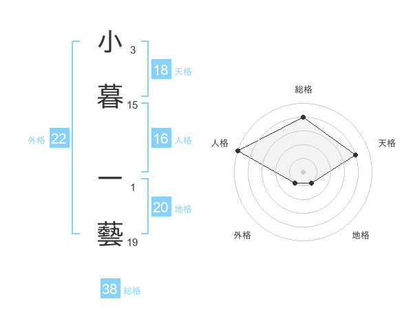 小暮 一藝さんの総格は38画の4点!