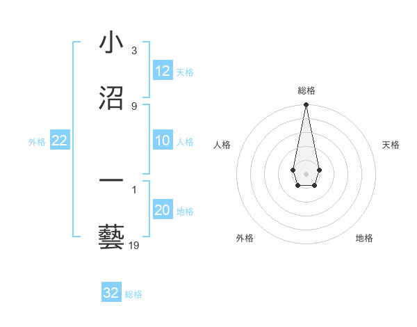小沼 一藝さんを姓名の画数から五運を鑑定