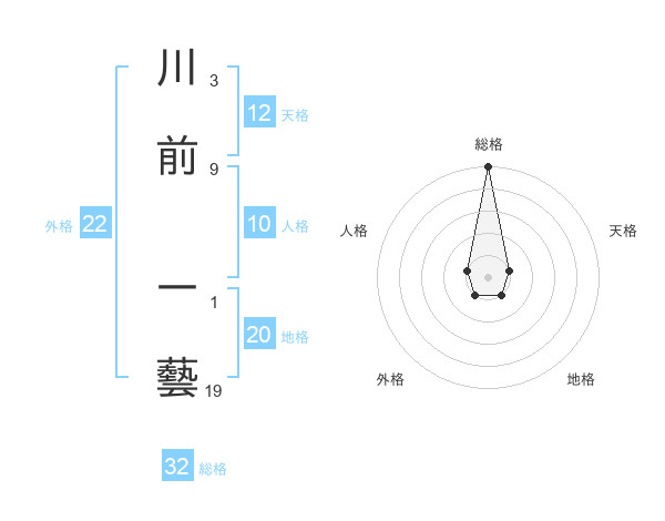 川前 一藝さんの総格は32画の5点!