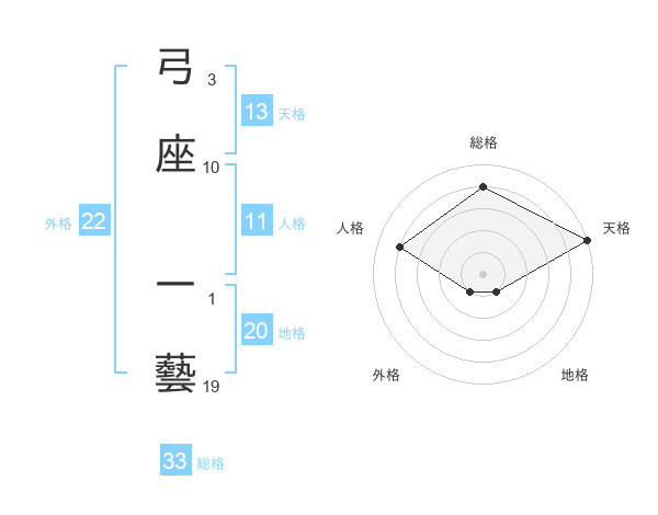 弓座 一藝さんの天格は13画の5点!