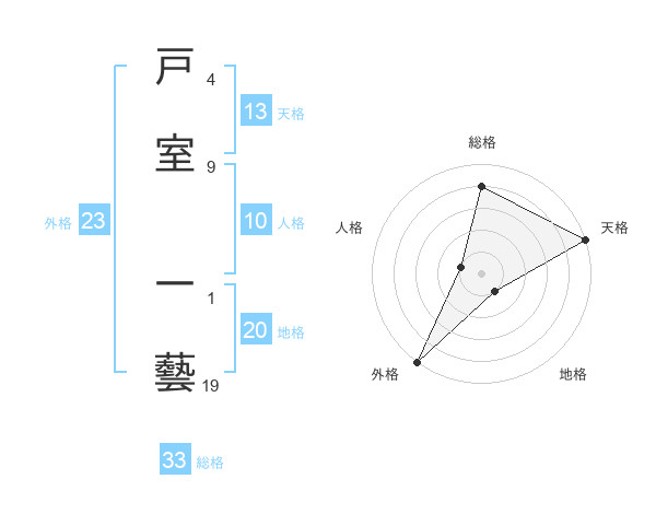 戸室 一藝さんを姓名の画数から五運を鑑定