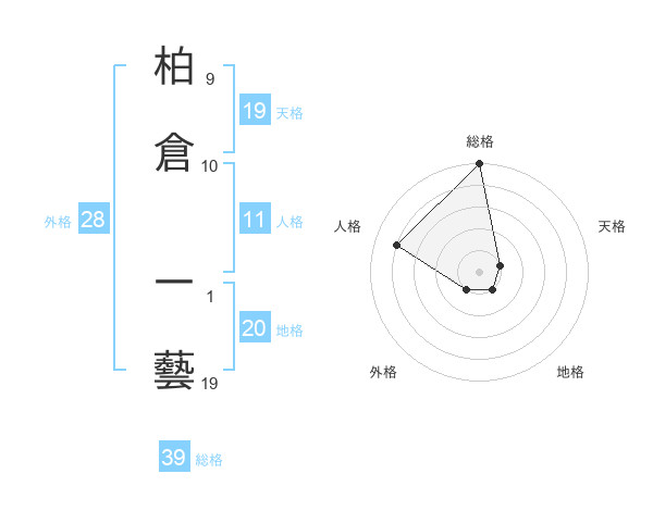 柏倉 一藝さんの総格は39画の5点!