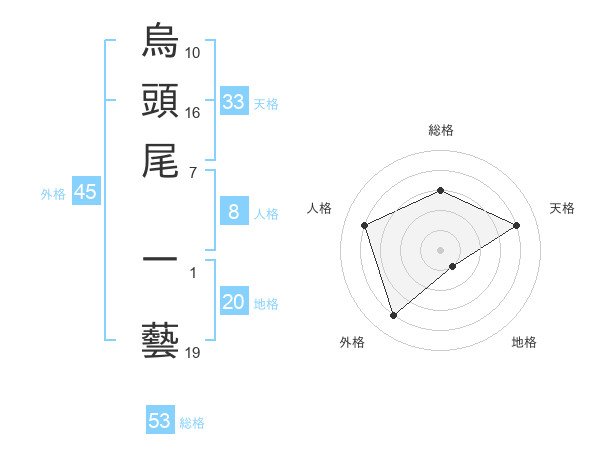 烏頭尾 一藝さんの総格は53画の3点!