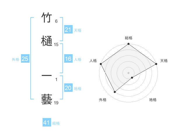 竹樋 一藝さんを姓名の画数から五運を鑑定