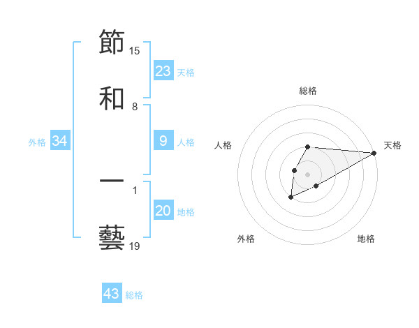 節和 一藝さんの天格は23画の5点!