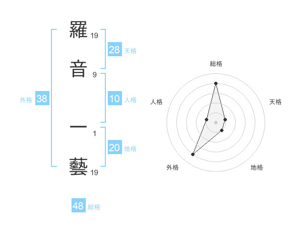 羅音 一藝さんの総格は48画の4点!