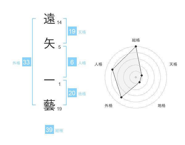 遠矢 一藝さんの総格は39画の5点!
