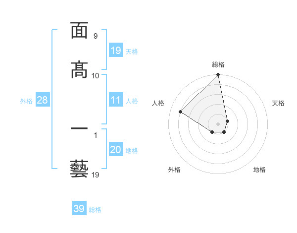 面髙 一藝さんを姓名の画数から五運を鑑定
