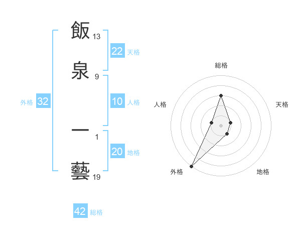 飯泉 一藝さんの外格は32画の5点!