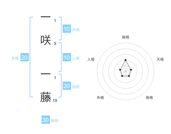 一咲 一藤さんを姓名の画数から五運を鑑定