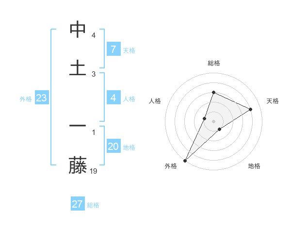 中土 一藤さんの総格は27画の3点!