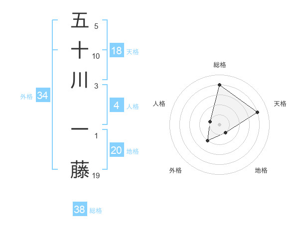 五十川 一藤さんの総格は38画の4点!