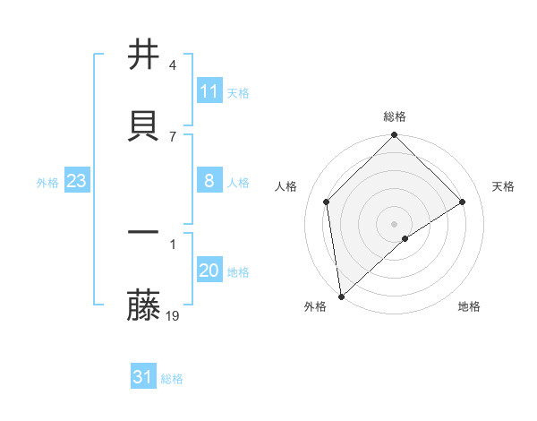 井貝 一藤さんを姓名の画数から五運を鑑定