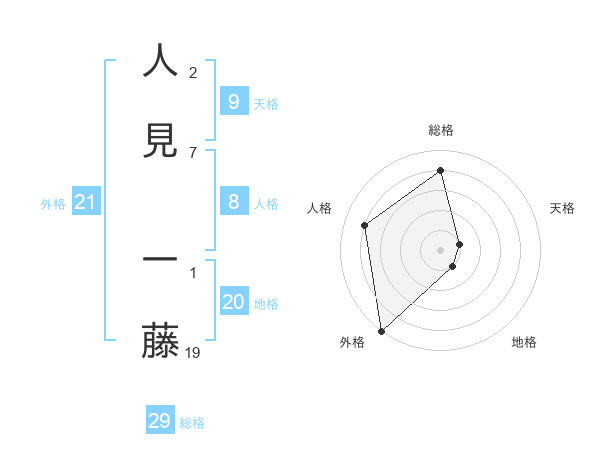 人見 一藤さんの総格は29画の4点!