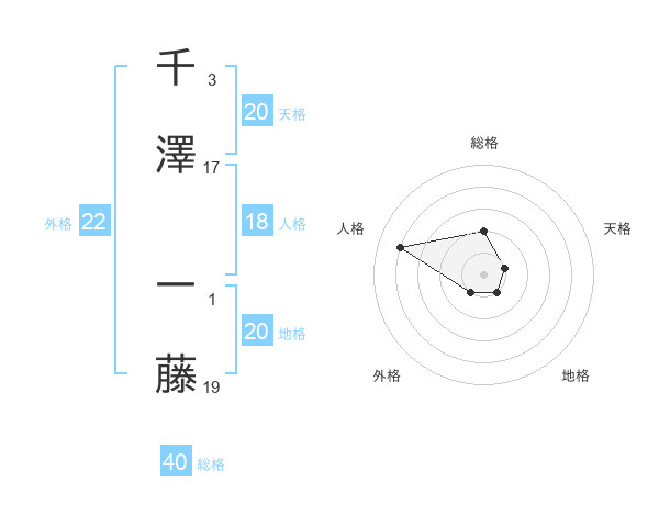 千澤 一藤さんを姓名の画数から五運を鑑定